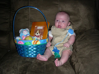 He also got a visit from his Aunt Sheila (and Grandma Mac - even though she isn't pictured) and then we went and spent Easter with Justin's dad's family and Jacob's 2nd cousins love him!
